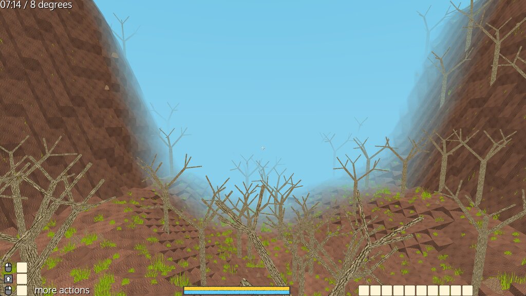 To wrap up this long post, I would like to share the screenshots of how the canyons and cliffs look inside the game. I am a little frustrated by the short viewing distance that prevents the player to see them in all their glory, so I may be looking into improving that sooner rather than later once the V6 is out. Which should be very soon.