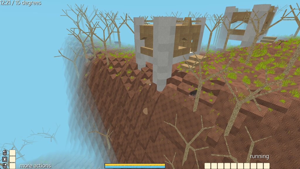 - I already have the temperature mechanics, so I should use it to create environmental threats as well. The nights must be colder, with a real risk of getting sick if you sleep in bad conditions. This should push the player to build campfires in order to stay warm and to build some sort of shelter to avoid sleeping on the ground. Adding a risk of food poisoning is also a great addition and an easy one to have.