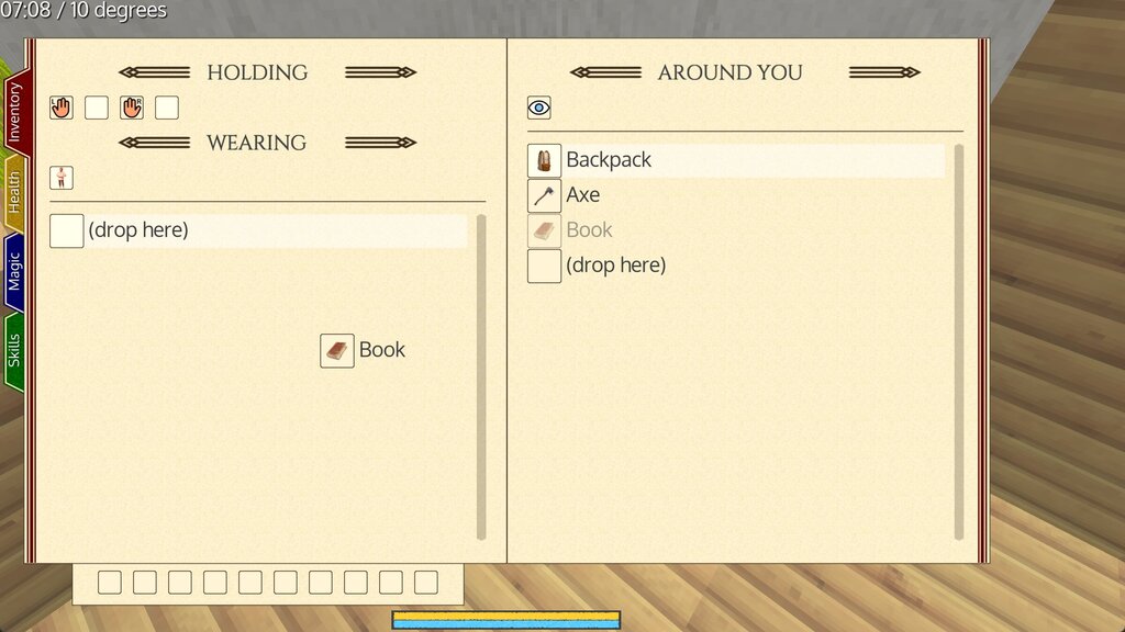 I am happy to announce that the V6 finally features a greatly improved drag-and-drop implementation. The dragging animation shows both the icon and the corresponding text. The item at the original location gently fades out as the dragged item fades in seamlessly when you move it away. Cherry on the cake, the compatible drop locations light up as well, including in the "held items" slots and the hotbar. This is determined based on what you are dragging, and from where. This way, you do not have to remember which slots accept this or that item. The inventory and the spell editing are now truly comfortable to use!