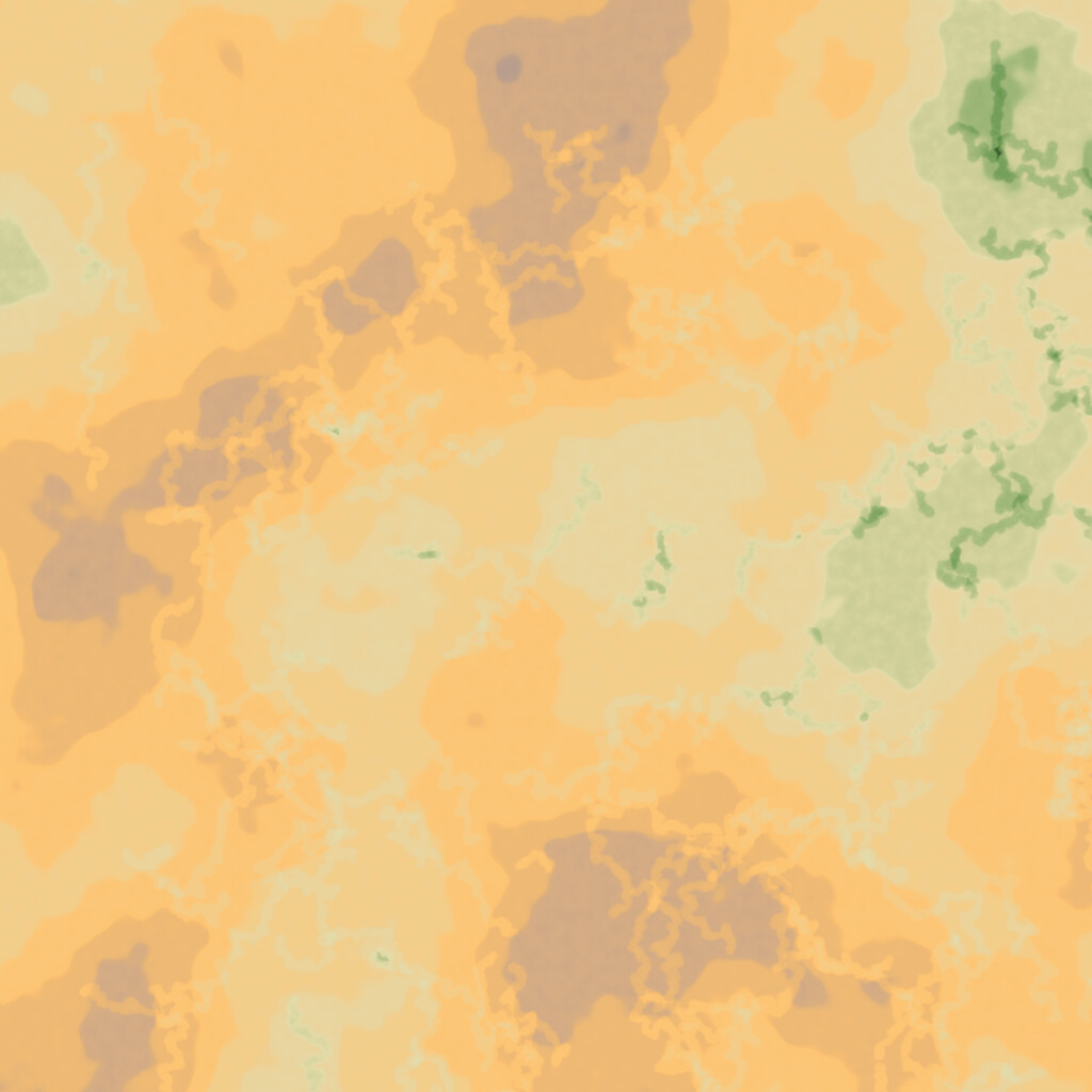 Despite the seeming simplicity of the used methods, countless tweaks and adjustments were necessary to choose the most interesting parameters for each bit of the landscape-generating machinery and to assemble all the disparate methods together. The V6 maps show the final result of this work.